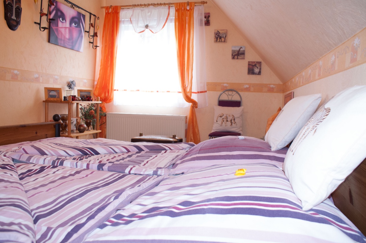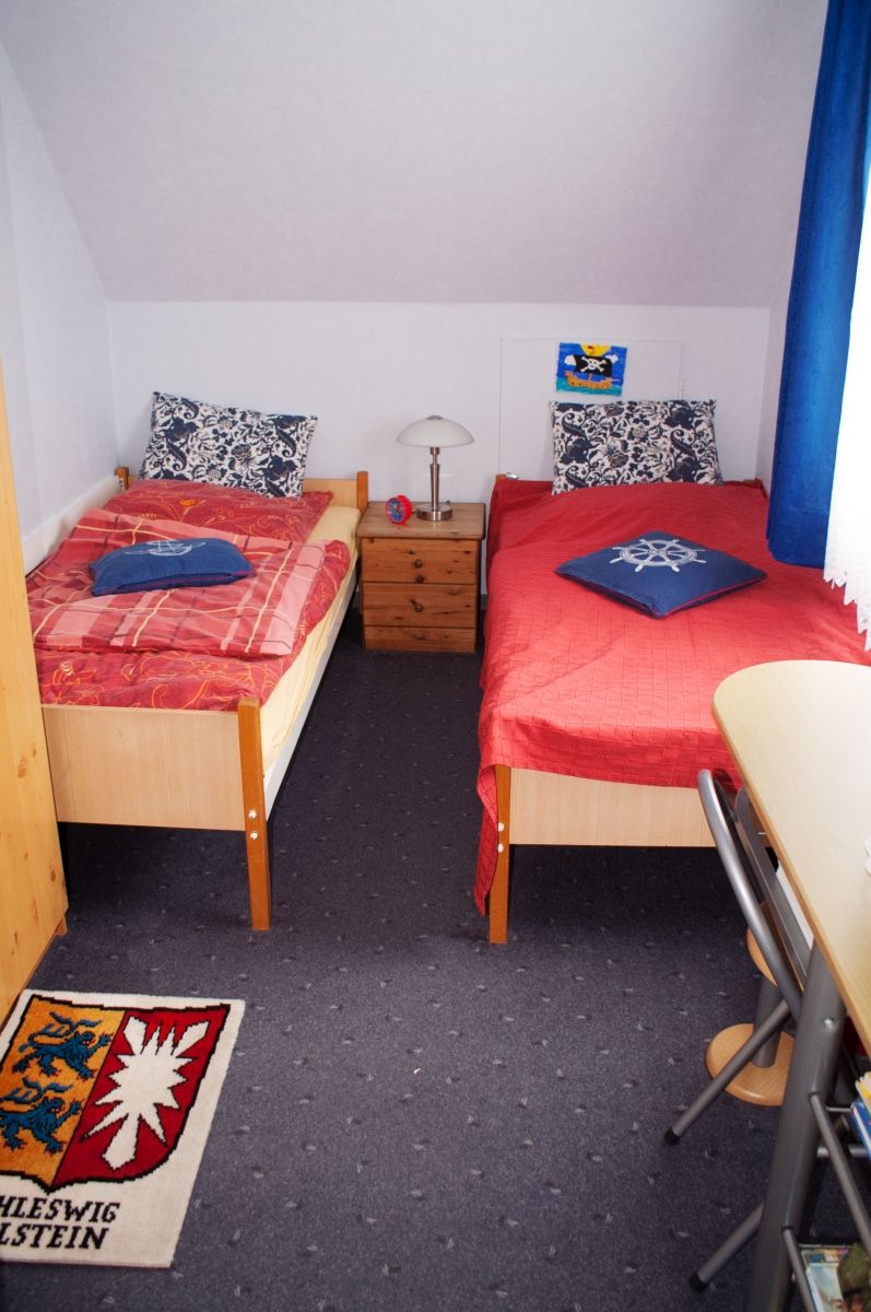 Im großzügigen Kinderzimmer kann nicht nur in den 2 Betten (0,90m x 1,90m), die sich gegenüber stehen geschlafen werden, sondern auch gespielt, Musik gehört oder gelesen werden.