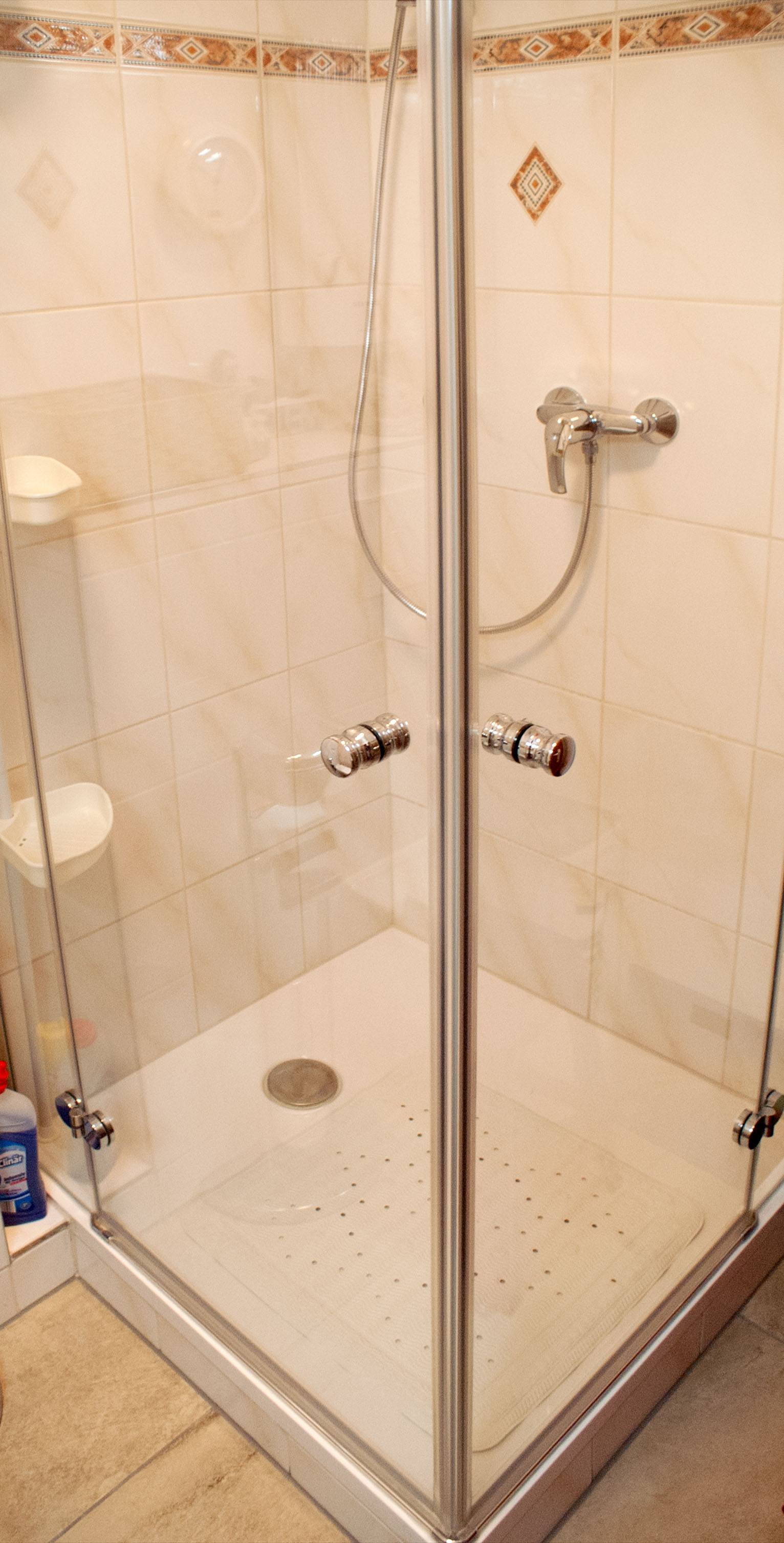 Das Bad ist mit einer Wanne und Duschgelegenheit versehen.